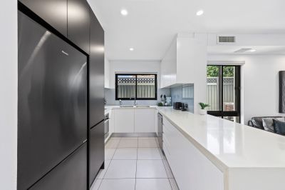 Located in a whisper-quiet street, the home is only 950m from Kogarah train station and an assortment of shops, cafes, schools, health care providers and major hospitals. Its open floorplan provides a seamless flow from one living area to the next, all whilst bathed in warm, natural light from the unique floor-to-ceiling designer windows.